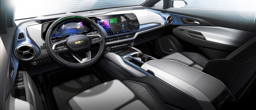 The Equinox EV is equipped with stanout technology inside the cabin. Its main feature is a 17.7-inch advanced color LCD screen with Google built-in, offering smooth access to navigation, apps, and personalized profiles. Natural Voice Recognition allows voice control of multiple functions, improving safety and ease of use.