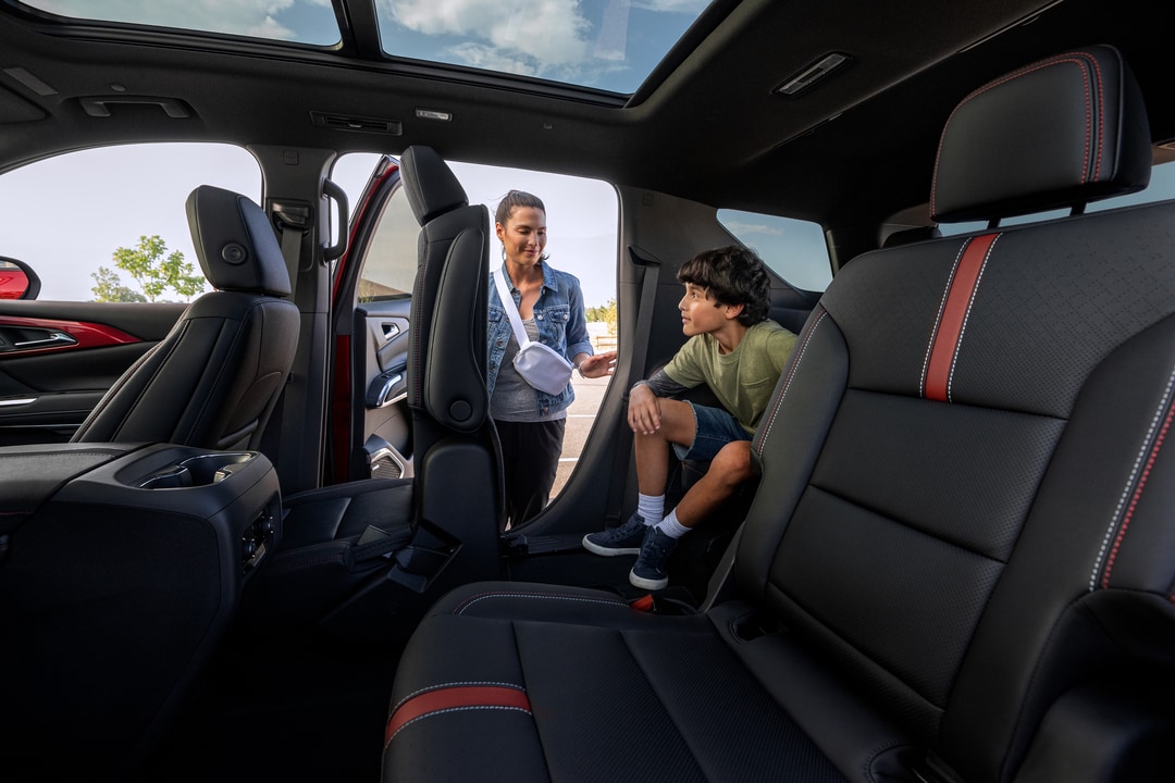 Inside the 2026 Chevy Traverse, the cabin offers seating for up to eight passengers, with plenty of head and legroom in all three rows. Premium materials and soft-touch surfaces throughout the cabin create an upscale feel.