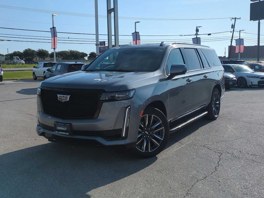 TOURING PACKAGE includes (AF7) front and rear, soft-close doors, (B7G) illuminating sill plates and (F47) Air Ride Adaptive suspension, SUPER CRUISE a hands-free driver assistance system for use on compatible roads (Vehicles built between October, 2021 and December 5, 2021, will be forced to have (00U) Not Equipped with Super Cruise, which removes Super Cruise and its content. Beginning with production starting December 6, 2021, (UKL) Super Cruise will be forced on as standard content. Beginning with production starting May 9, 2022, vehicles will be forced to include (00U) Not Equipped with Super Cruise, which removes Super Cruise and its content. See dealer for details or the window label for the features on a specific vehicle. Always pay attention while driving and when using Super Cruise. Do not use a hand-held device. Visit cadillac.com/supercruise for compatible roads and full details.), LPO, FLOOR LINER PACKAGE includes (CAV) All-Weather integrated cargo liner, LPO and (RIB) All-Weather Floor Liner Package, 1st, 2nd and 3rd rows, LPO, SUSPENSION, AIR RIDE ADAPTIVE, OLED INFOTAINMENT EXPERIENCE WITH NAVIGATION AM/FM/SiriusXM with 360L with 16.9" diagonal color information display (displays and controls navigation, music and all features and functions of the vehicle), personalized profiles for each driver's settings, Natural Voice Recognition, Phone Integration for Wireless Apple CarPlay®/Wireless Android Auto® capability for compatible phone, Connected Apps and Teen Driver (STD), ENGINE, 6.2L V8 WITH DYNAMIC FUEL MANAGEMENT Direct Injection and Variable Valve Timing, includes aluminum block construction (420 hp [313.2 kW] @ 5600 rpm, 460 lb-ft of torque [623.7 Nm] @ 4100 rpm) (STD), TRANSMISSION, 10-SPEED AUTOMATIC electronically controlled with overdrive, tow/haul mode and tap up/tap down shifting (STD). Cadillac Sport with Satin Steel Metallic exterior and Jet Black interior features a 8 Cylinder Engine with 420 HP at 5600 RPM*.