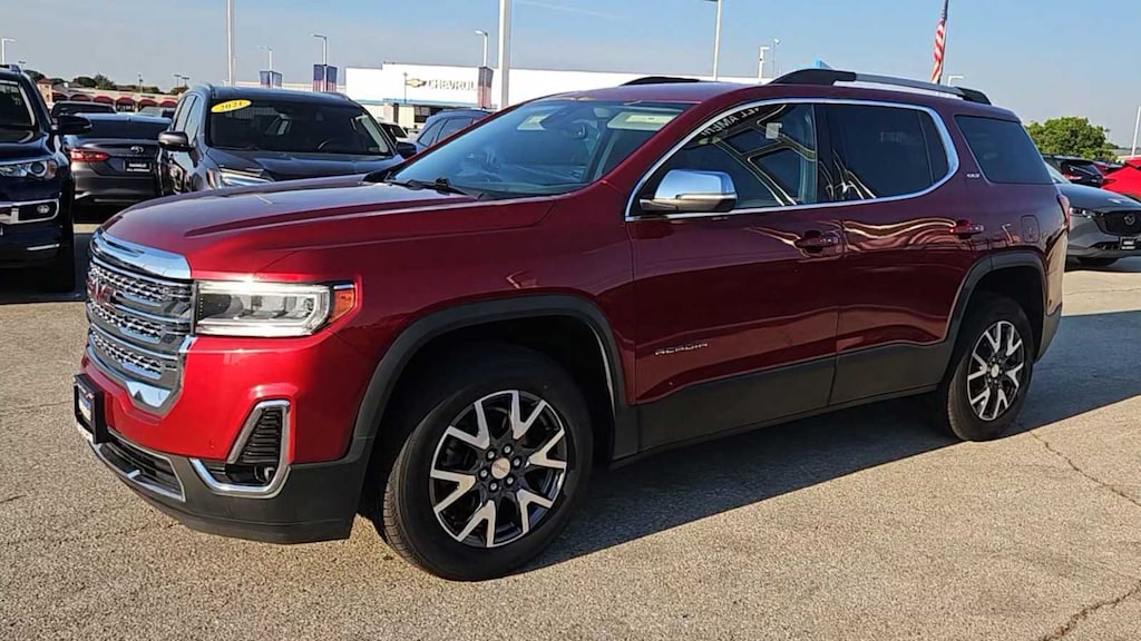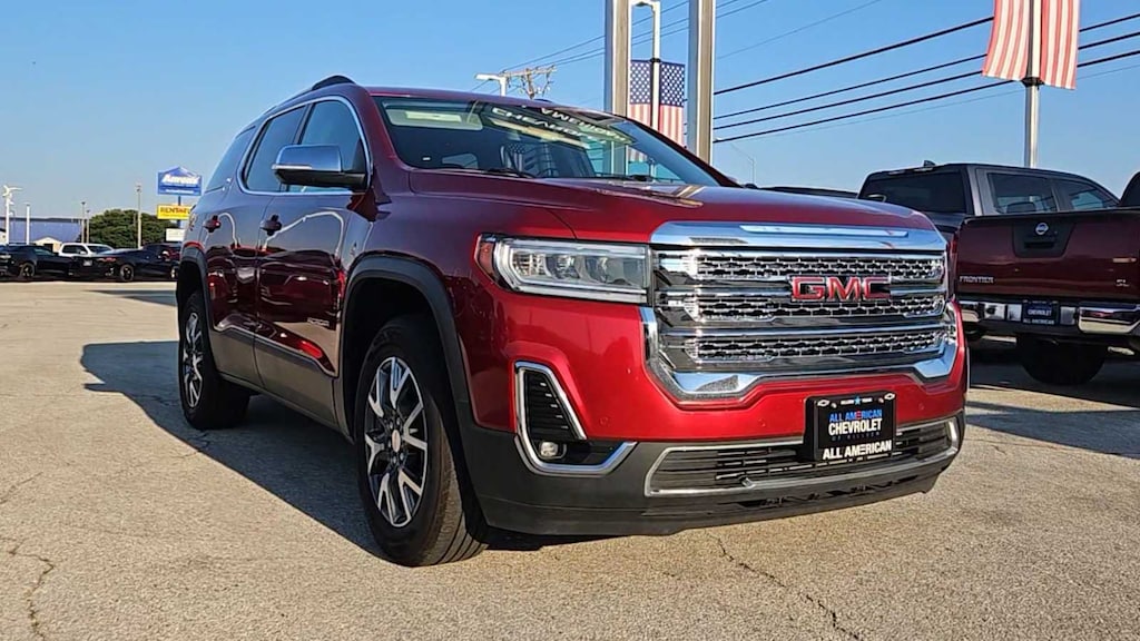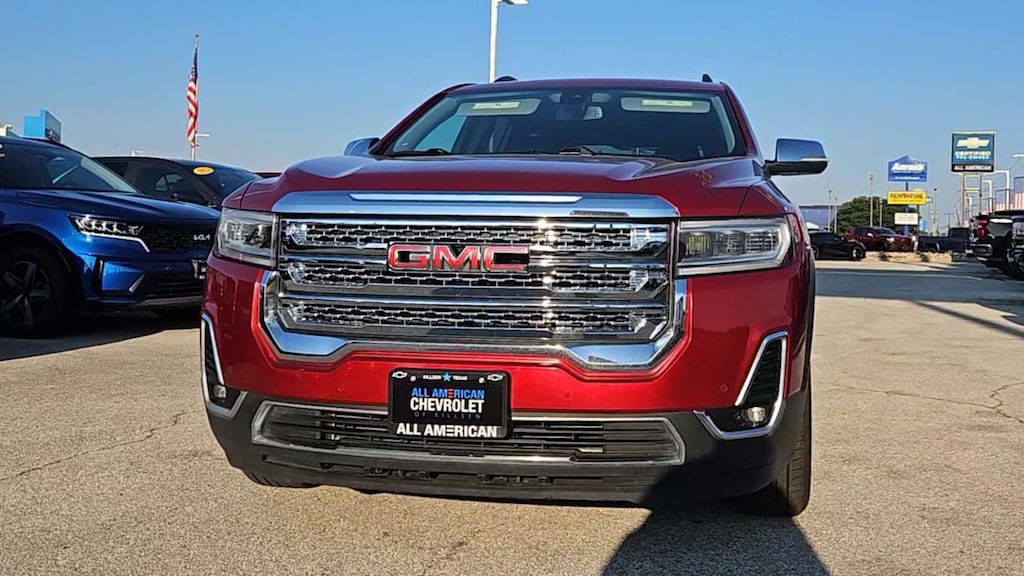 AUDIO SYSTEM, 8" DIAGONAL GMC INFOTAINMENT SYSTEM WITH NAVIGATION includes multi-touch display, AM/FM/SiriusXM stereo, Bluetooth® streaming audio for music and most phones, Android Auto® and Apple CarPlay® capability for compatible phones, advanced voice recognition, in-vehicle apps, personalized profiles for infotainment and vehicle settings (STD), ENGINE, 2.0L TURBO, 4-CYLINDER, SIDI with Variable Valve Timing (VVT) (228 hp [171 kW] @ 5000 rpm, 258 lb-ft of torque [349.8 N-m]) @ 1500 - 4000 rpm (STD), TRANSMISSION, 9-SPEED AUTOMATIC, ELECTRONICALLY-CONTROLLED with 2.0L Turbo engine (STD). GMC SLT with Volcanic Red Tintcoat exterior and Jet Black interior features a 4 Cylinder Engine with 228 HP at 5000 RPM*.